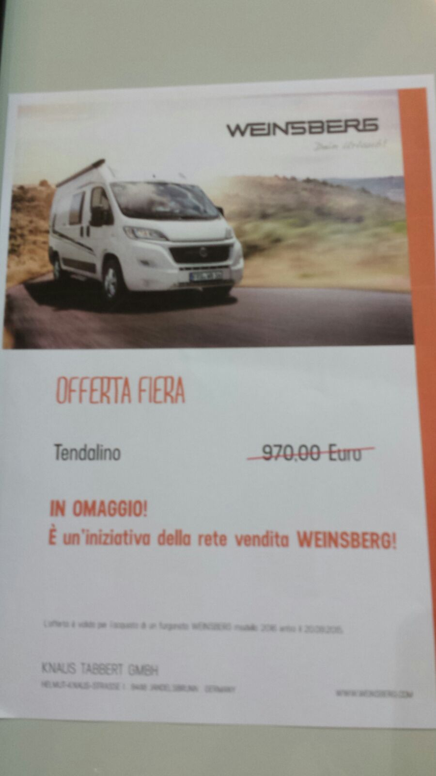 IMG-20150925-WA0000        OFFERTA FIERA CARAVAN WEINSBERG