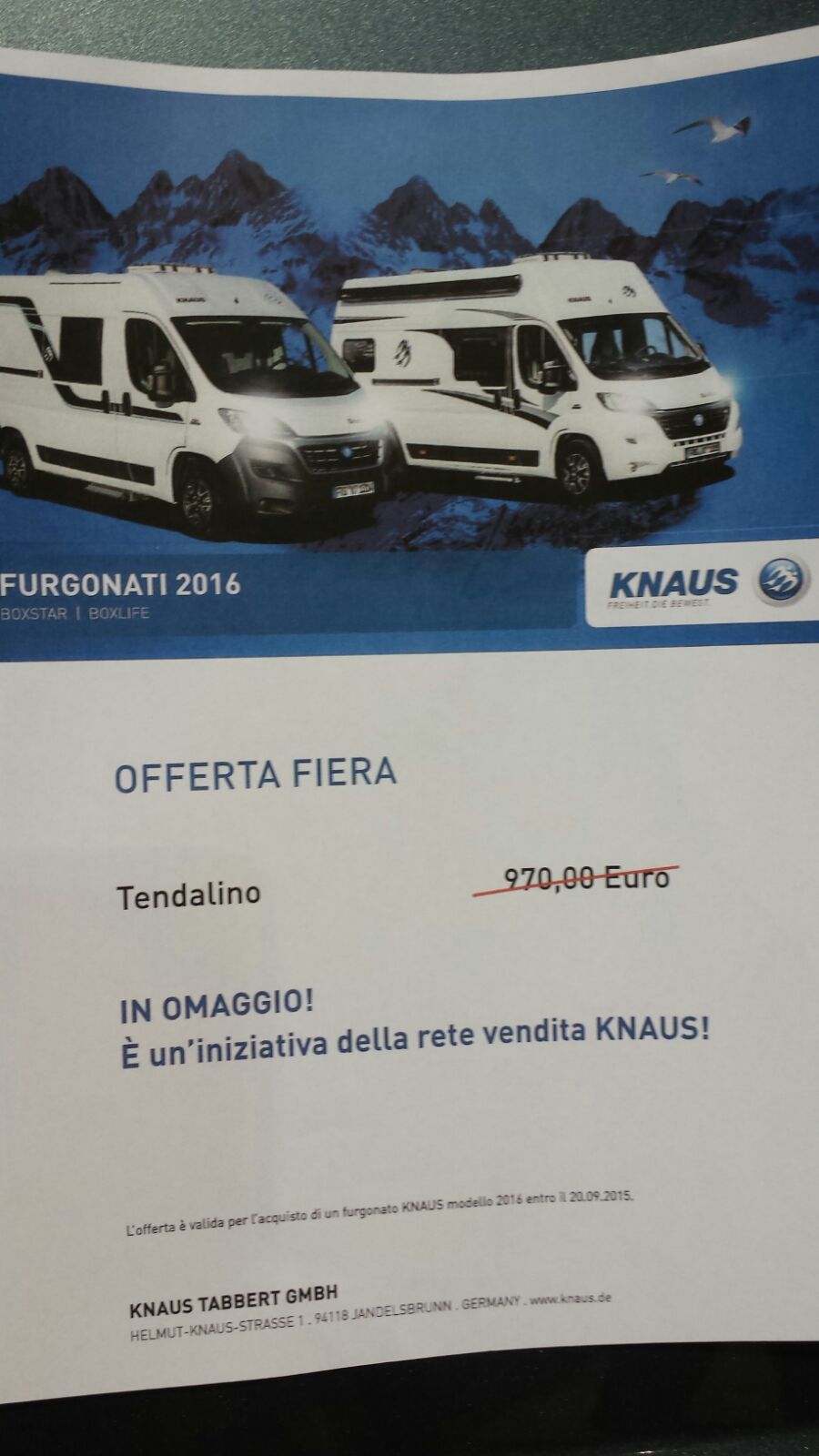 KNAUS OFFERTE FIERA IN SCADENZA 3/10/15